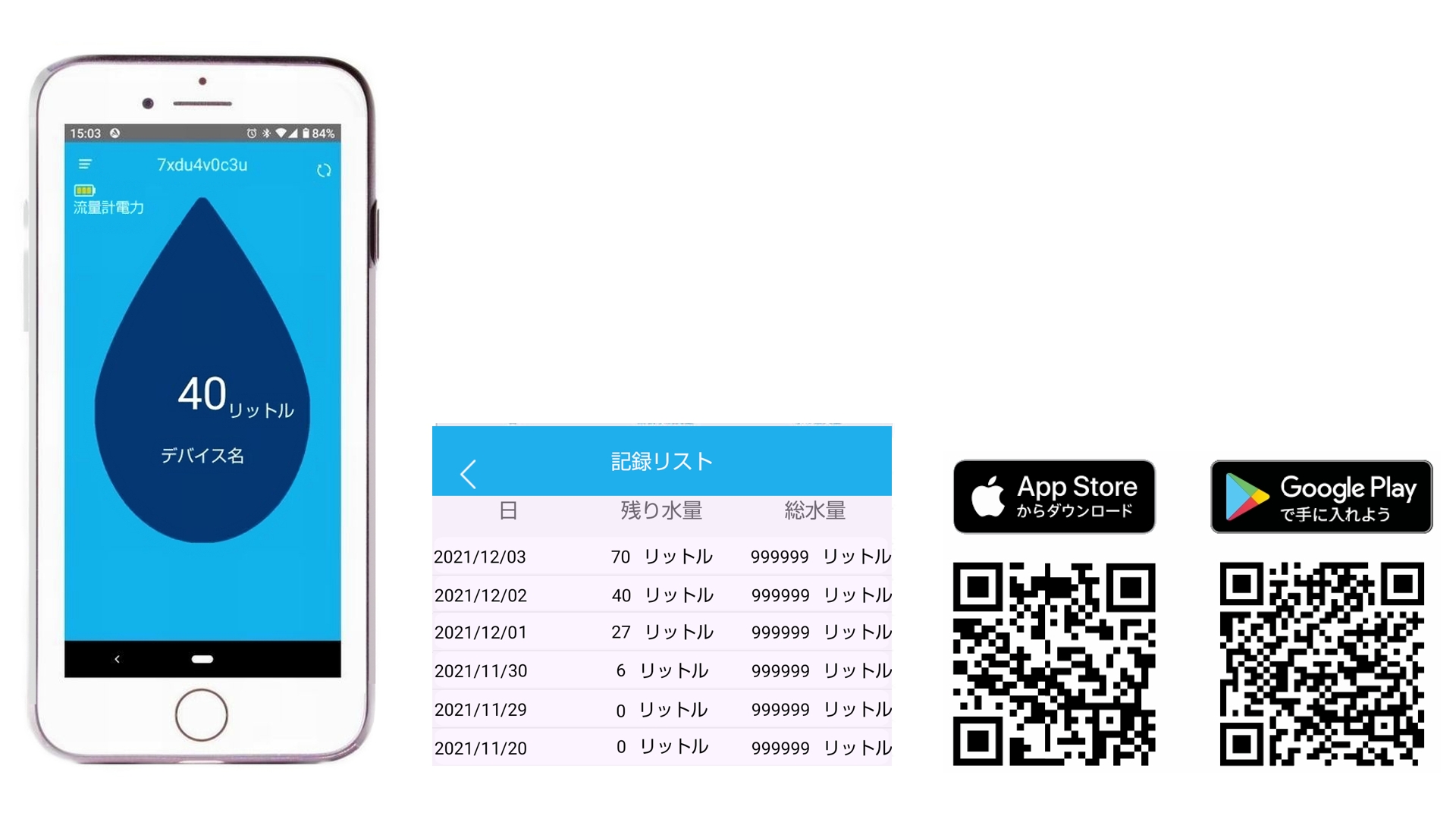 ・Bluetooth で接続したスマホで、専用アプリから積算流量を確認