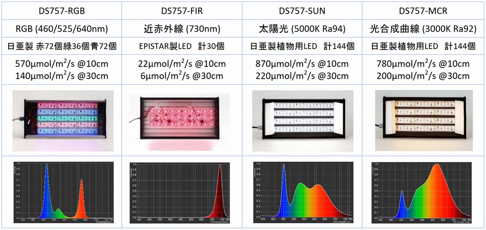 ・RGBは、赤640nm, 緑525nm, 青460nmが、それぞれ個別に0~100%で調光できます。