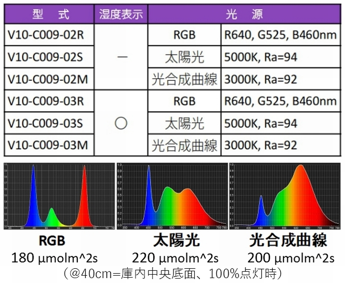 ・RGB タイプ、太陽光タイプ、光合成曲線タイプの3 種類をご用意