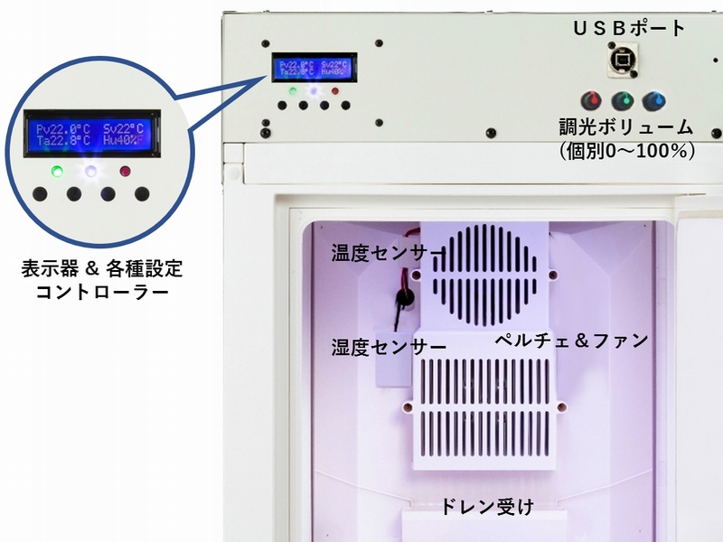 高光量LED、高性能コントローラー、ペルチェ温調方式を採用した、植物の発芽・育苗試験に最適なインキュベーターです。