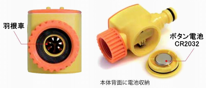 流速に比例した速さで回る羽根車の、回転数を換算して水の流量を測定し、積算流量をデジタルで表示します。